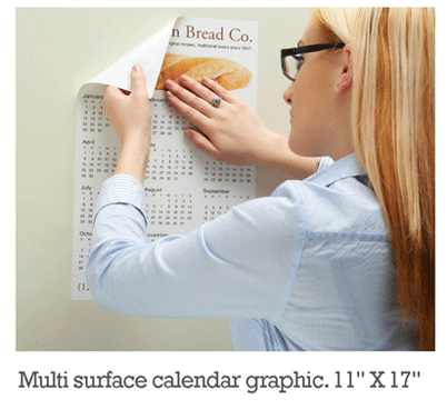 Description : Ultra repositionable adhesive. Peel liner to reveal the repositionable adhesive backer. Logo / message prints in digital 4 color process. Design a yearly calendar with your company's logo on the front. The design doesn't have to be a calendar, it can be a full color advertisment for your company too.